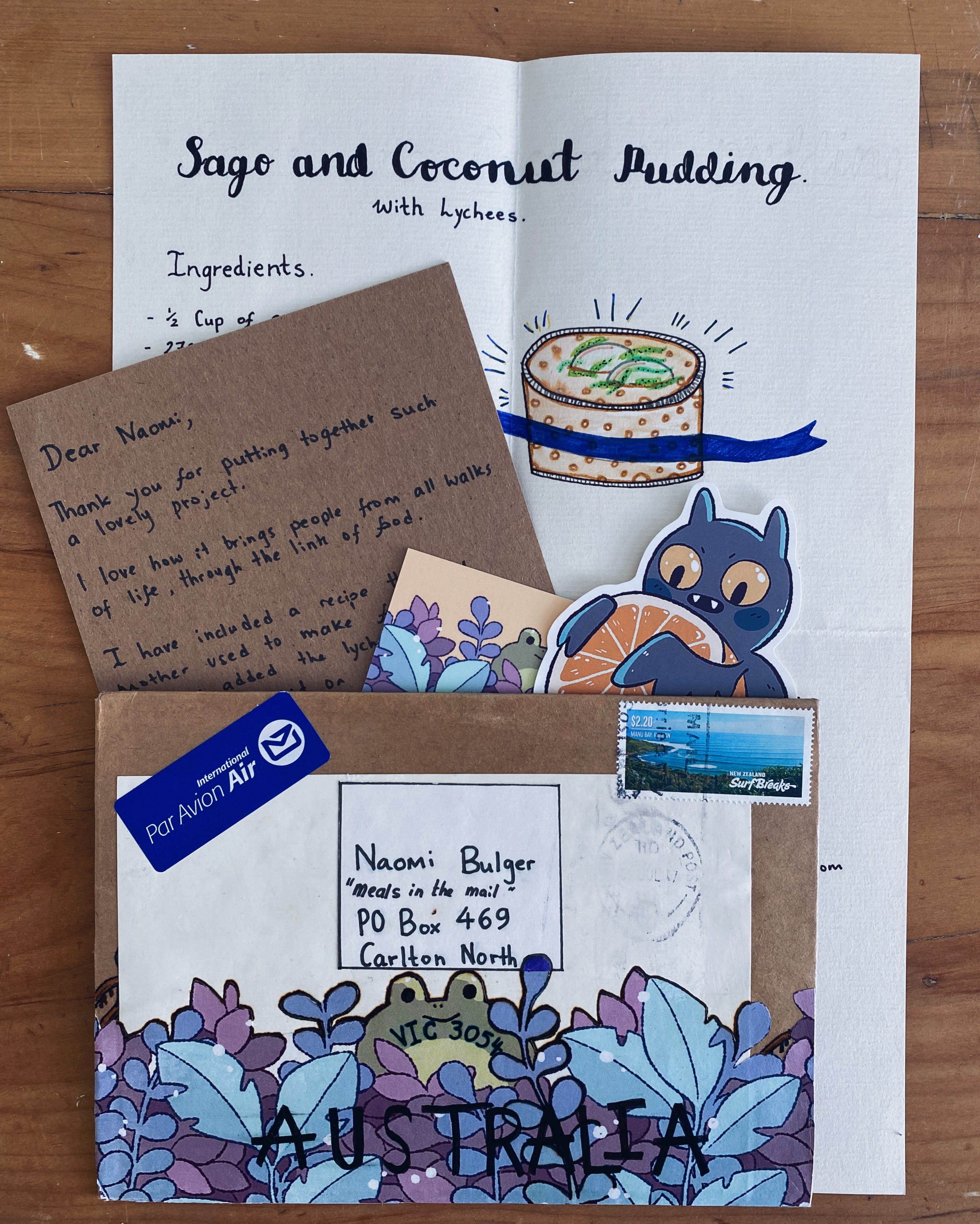 “I have included a recipe that my mother used to make for me,” Melissa wrote in her letter. “My mother is of Malaysian decent, and one of my fondest memories is the variety of deserts and puddings she would make.”